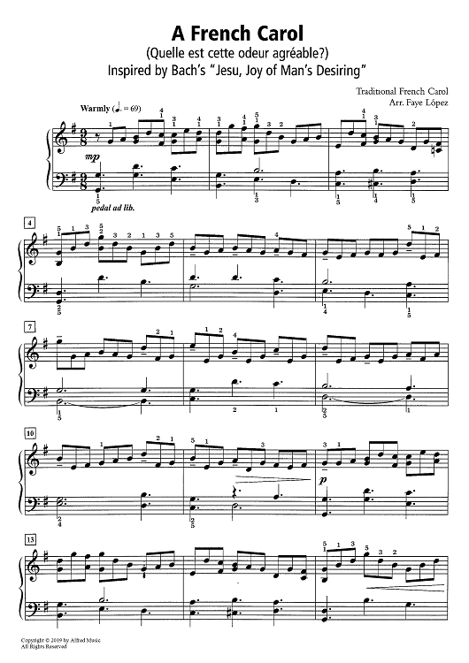 Digital Sheet Music for A French Carol - Inspired by Bach's "Jesu, Joy of Man's Desiring" by Traditional French Carol, Faye López scored for Piano Solo; id:467921