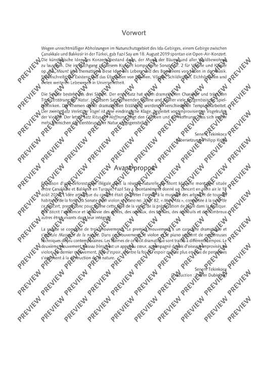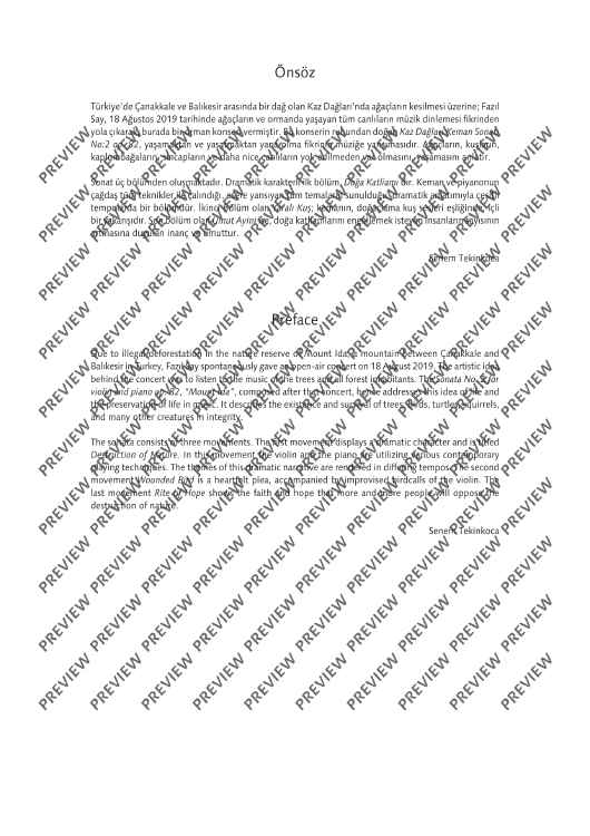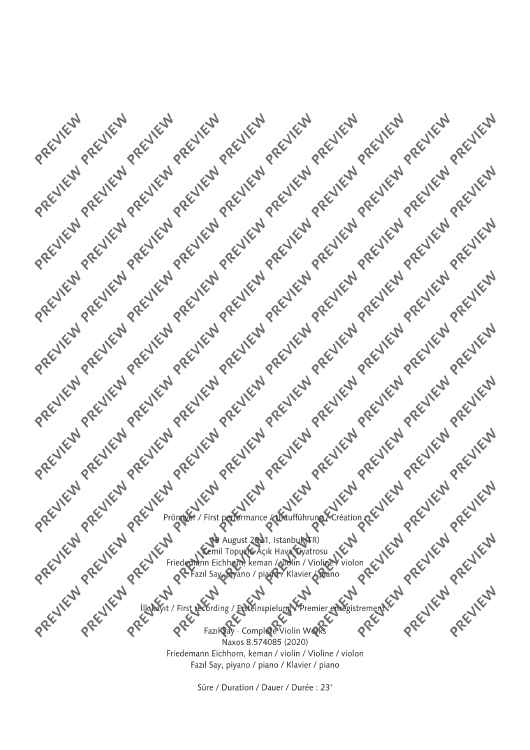 Digital Sheet Music for Kaz Daglari Sonati - Score and Parts by Fazil Say scored for Violin And Piano; id:496849