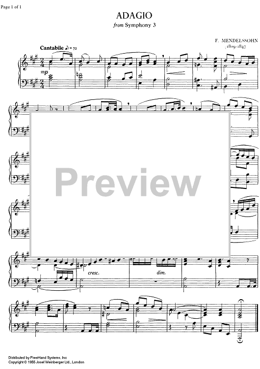 Digital Sheet Music for Adagio from Symphony No. 3 by , Felix Mendelssohn scored for Organ or Piano; id:336082