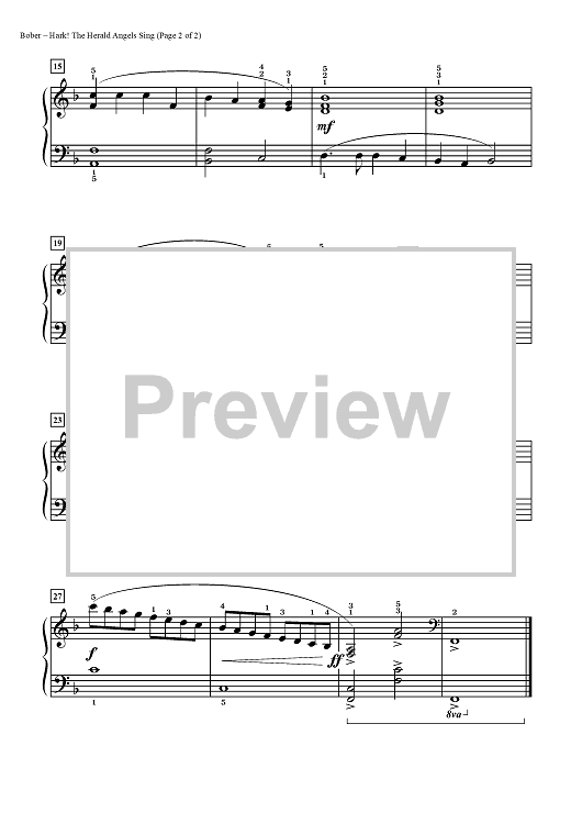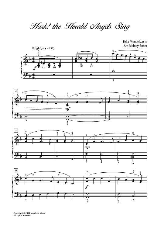 Digital Sheet Music for Hark! the Herald Angels Sing by Felix Mendelssohn, Melody Bober scored for Piano; id:462796