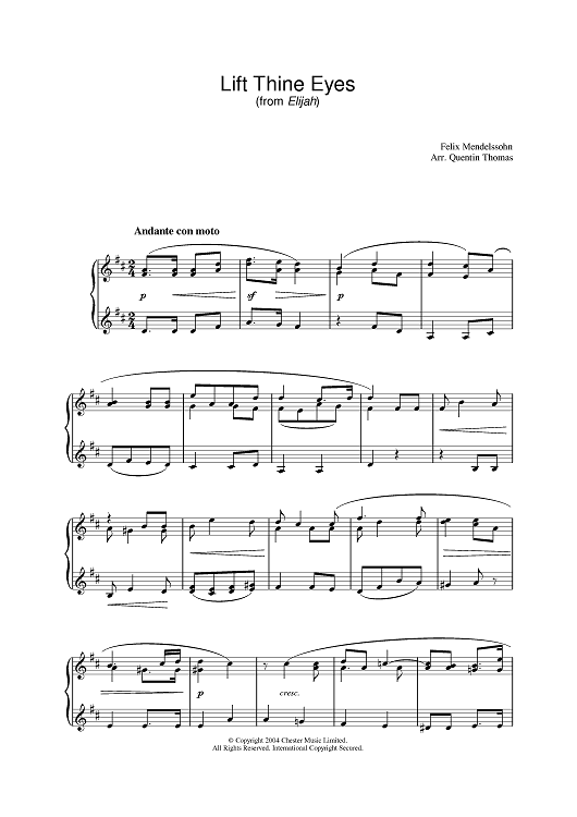 "Lift Thine Eyes" Sheet Music by Felix Mendelssohn