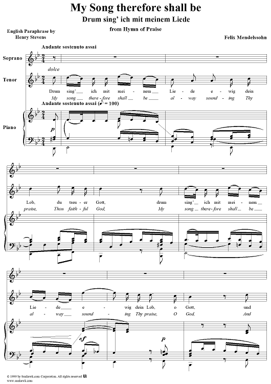 "My Song therefore shall be" Sheet Music by Felix Mendelssohn