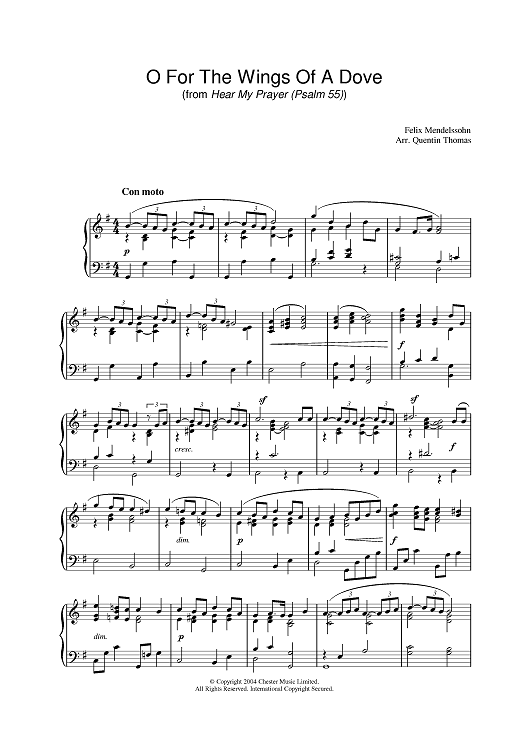 Digital Sheet Music for O For The Wings Of A Dove by Felix Mendelssohn scored for Piano; id:378563