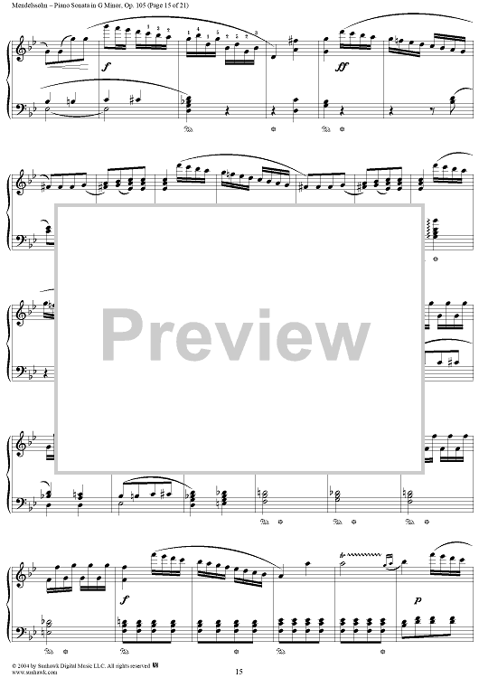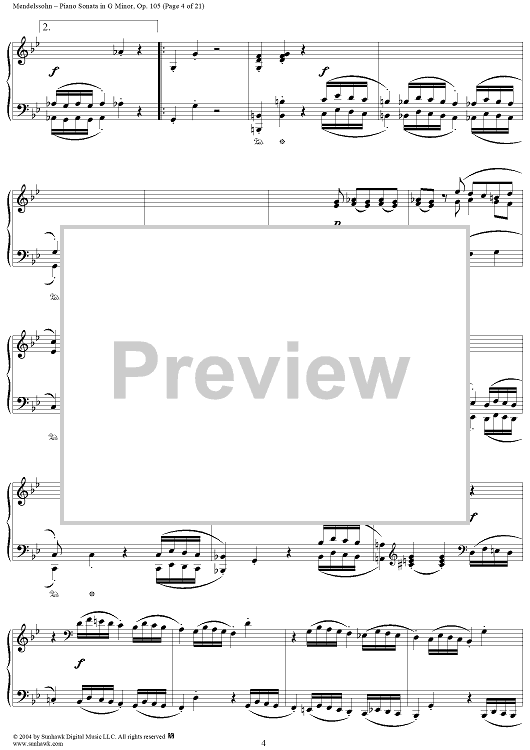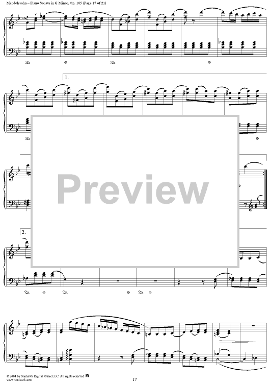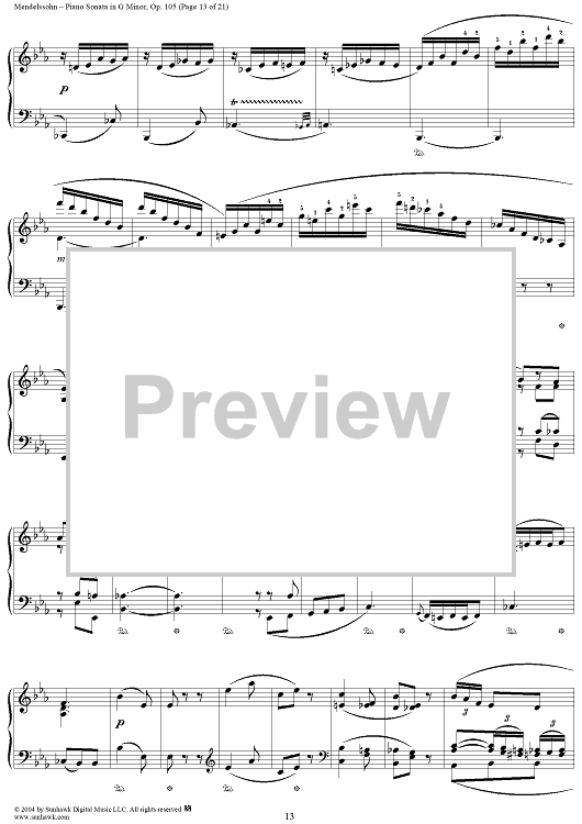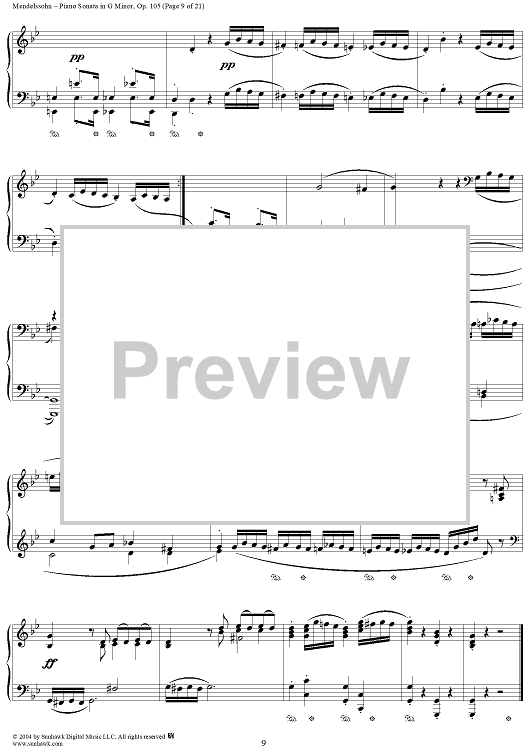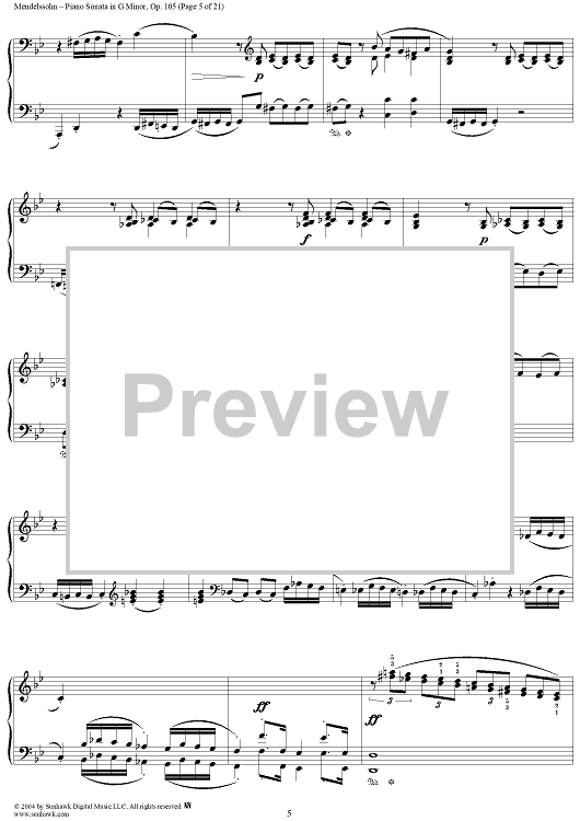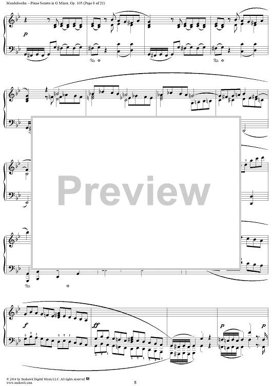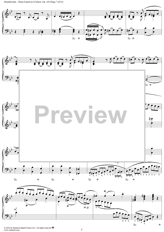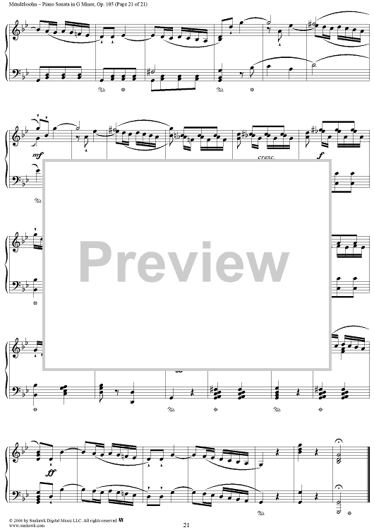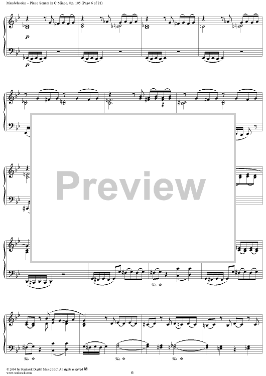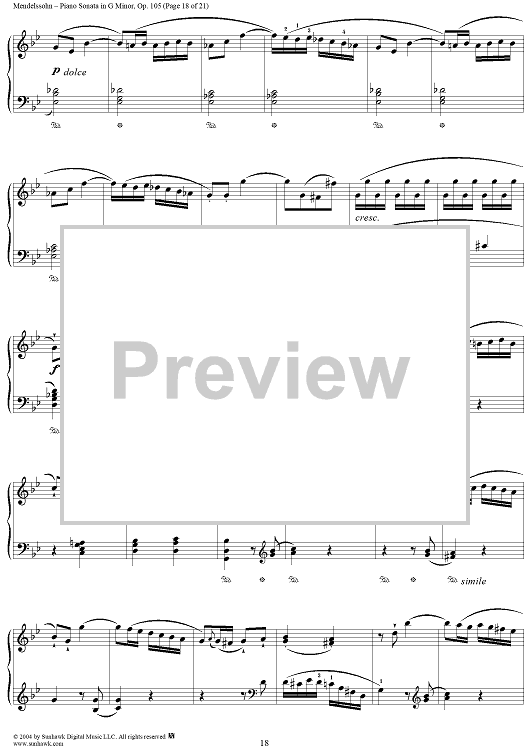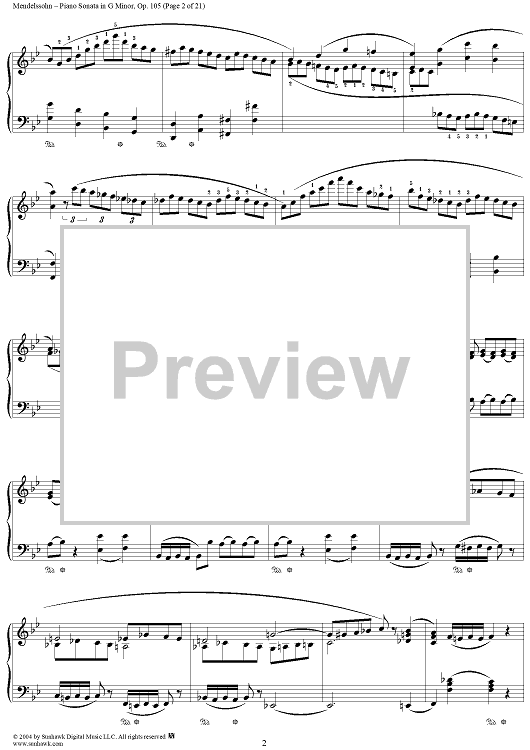 Digital Sheet Music for Piano Sonata in G Minor, Op. 105 by Felix Mendelssohn scored for Piano Solo; id:296122