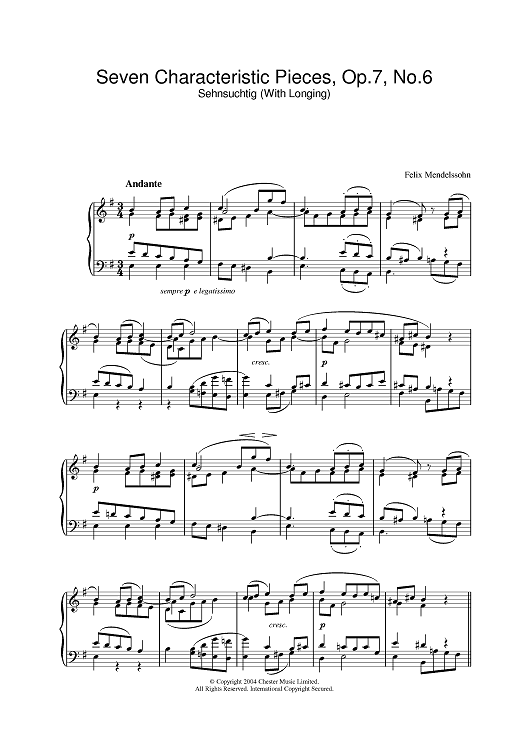 "Seven Characteristic Pieces, Op.7, No.6" Sheet Music by Felix Mendelssohn