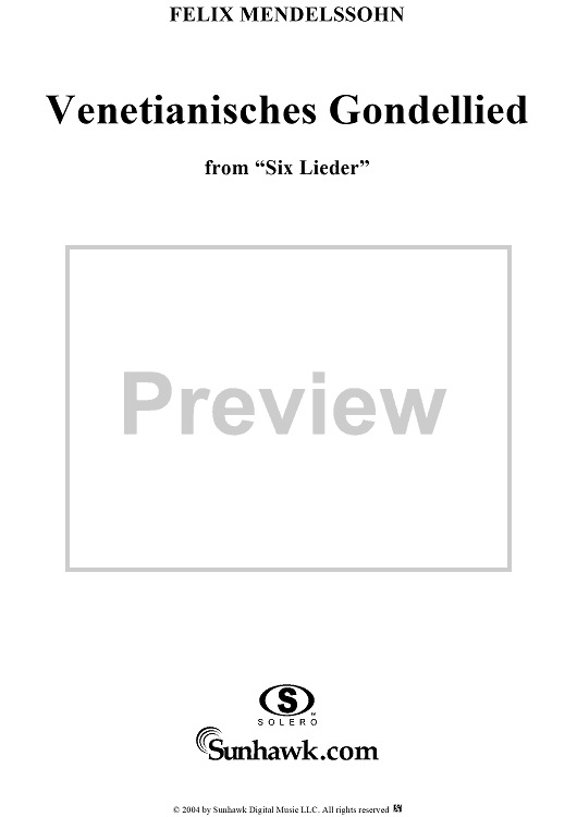 Digital Sheet Music for Six Lieder, Op. 57, No. 5: "In a Gondola" (Venetianisches Gondellied) by Felix Mendelssohn scored for Voice/Piano; id:252169