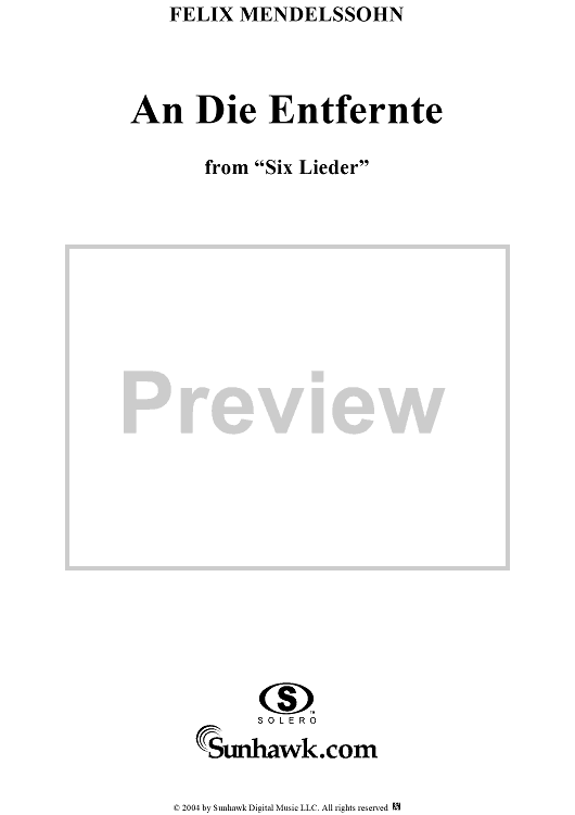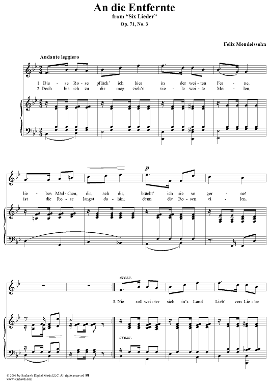 Digital Sheet Music for Six Lieder, Op. 71, No. 3: "To the Absent One" (An Die Entfernte) by Felix Mendelssohn scored for Voice/Piano; id:252110