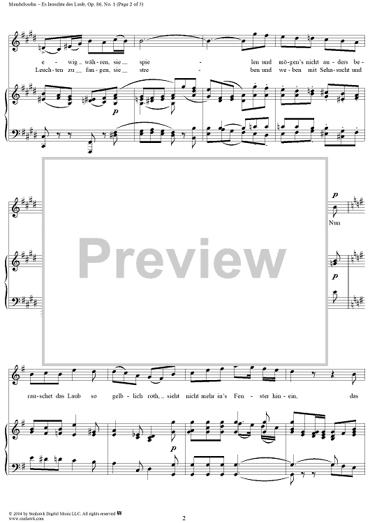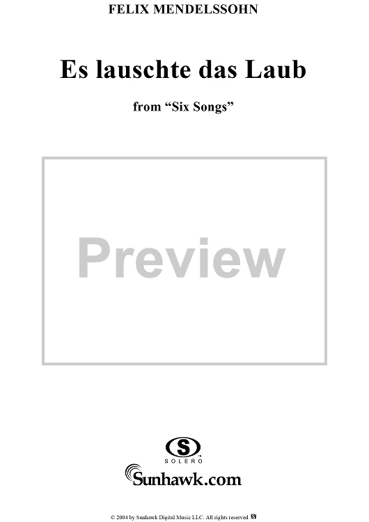 Digital Sheet Music for Six Songs, Op. 86, No. 1: "Deserted" (Es Lauschte das Laub So Dunkelgrün) by Felix Mendelssohn scored for Voice/Piano; id:252179