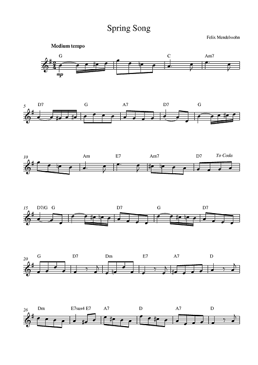 Digital Sheet Music for Spring Song by Felix Mendelssohn scored for Lead Sheet; id:380924
