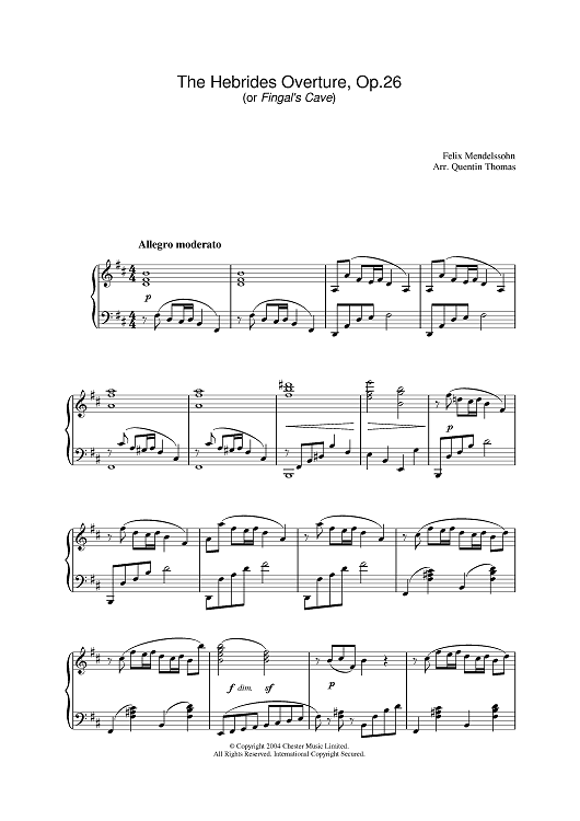 Digital Sheet Music for The Hebrides Overture, Op.26 by Felix Mendelssohn scored for Piano; id:378571