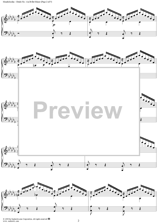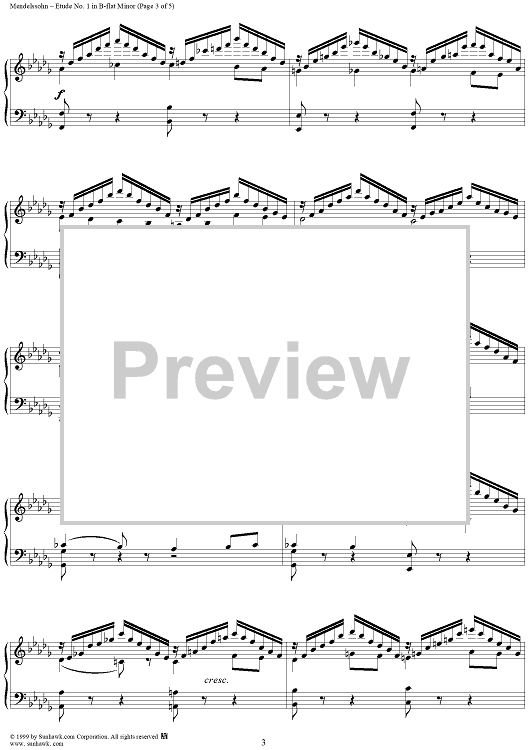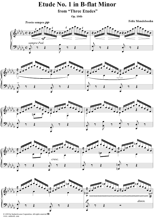 Digital Sheet Music for Three Etudes, Op. 104b, No. 1: Etude in B-flat Minor by Felix Mendelssohn scored for Piano Solo; id:263072