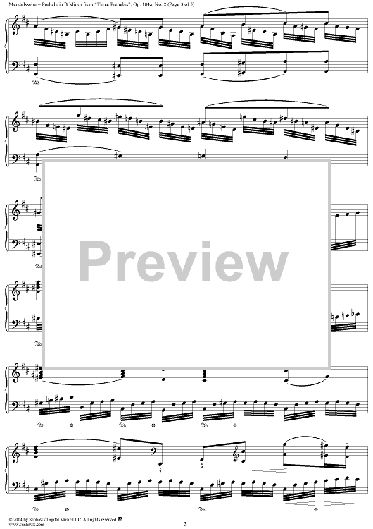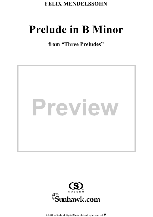 Digital Sheet Music for Three Preludes, Op. 104a, No. 2: Prelude in B Minor by Felix Mendelssohn scored for Piano Solo; id:296120
