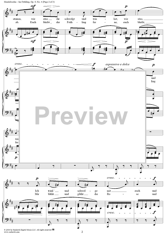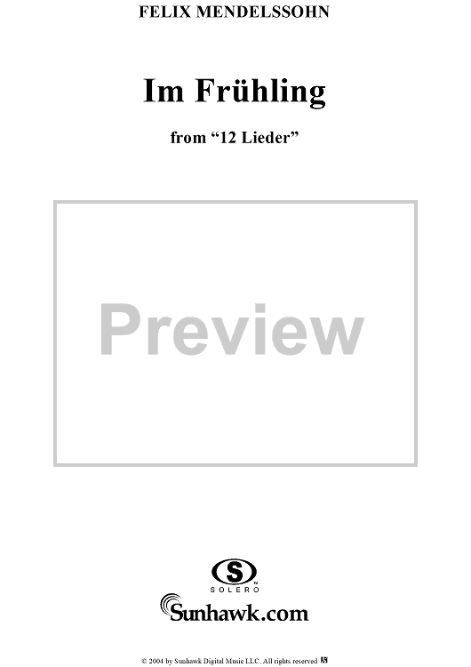 Digital Sheet Music for Twelve Lieder, Op. 9, No. 4: "In Springtime" (Im Frühling) by Felix Mendelssohn scored for Voice/Piano; id:252159