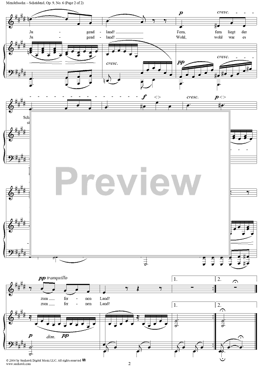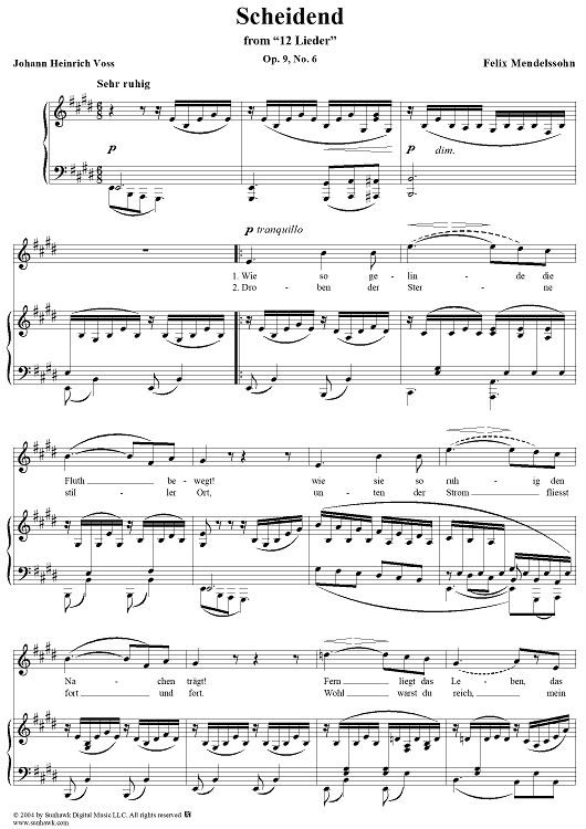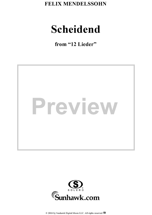 Digital Sheet Music for Twelve Lieder, Op. 9, No. 6: "Parting" (Scheidend) by Felix Mendelssohn scored for Voice/Piano; id:252277