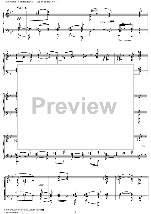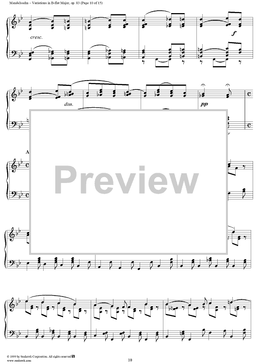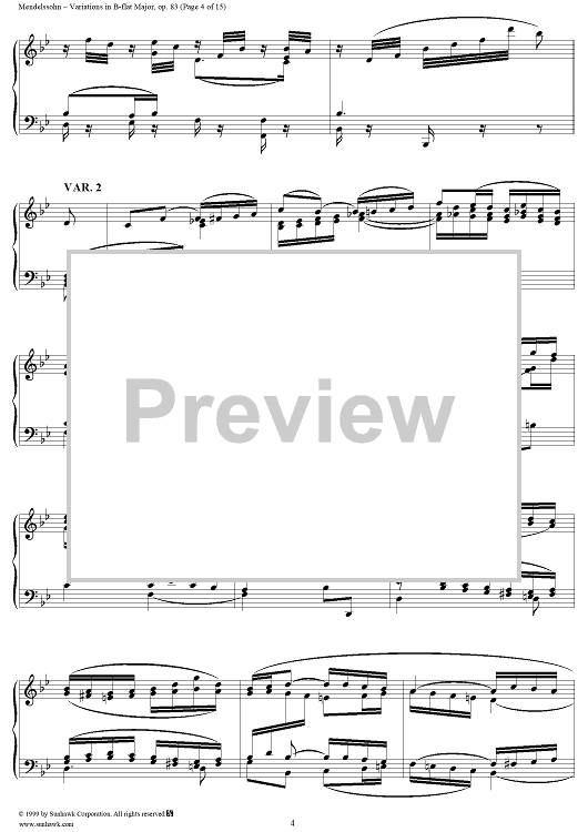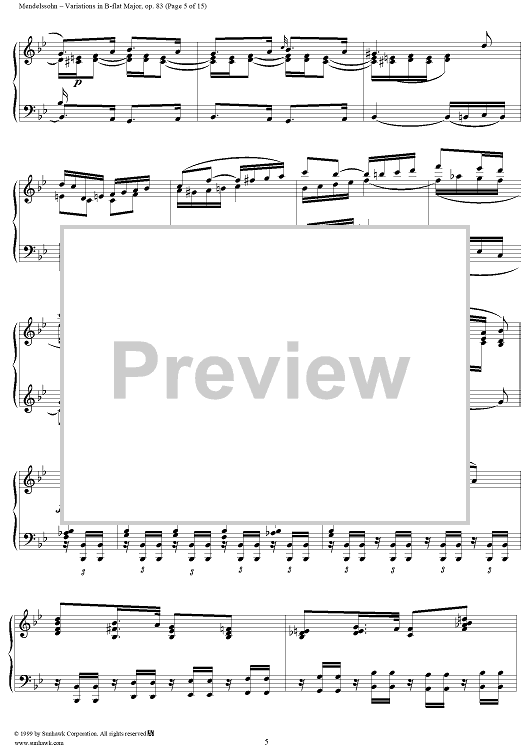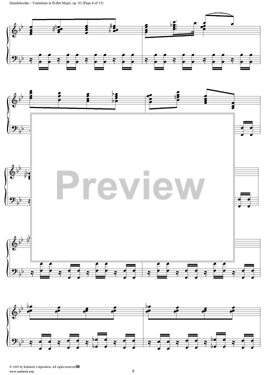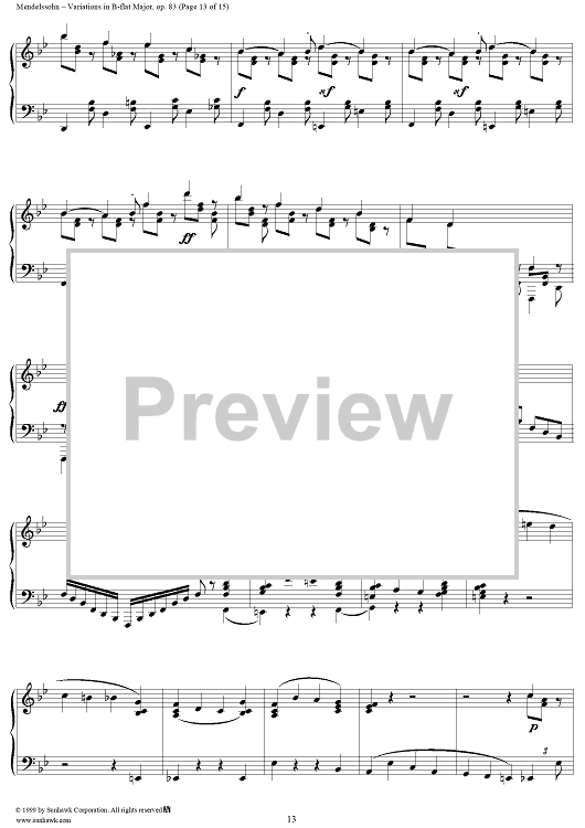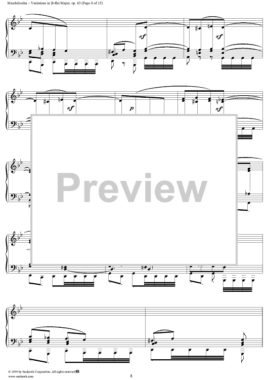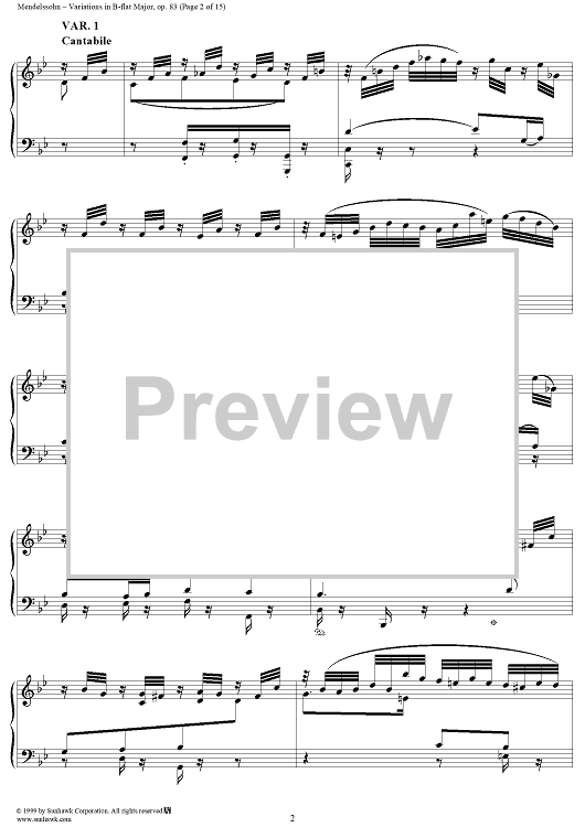 Digital Sheet Music for Variations in B-flat Major, Op. 83 by Felix Mendelssohn scored for Piano Solo; id:252101