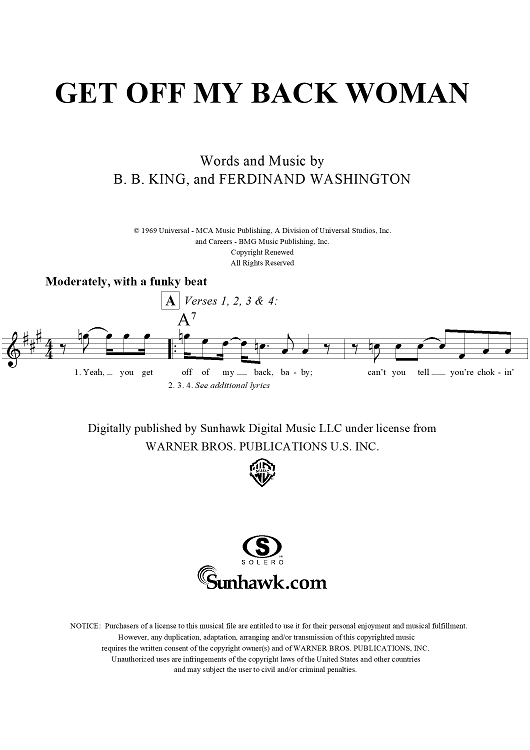 "Get Off My Back Woman" Sheet Music by B.B. King