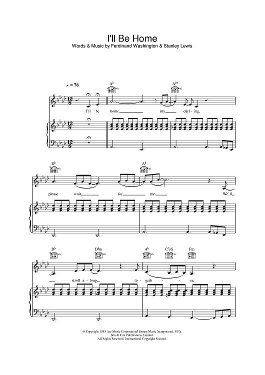 Digital Sheet Music for I'll Be Home by Pat Boone, Ferdinand Washington, Stanley Lewis scored for Piano/Vocal/Chords; id:381716