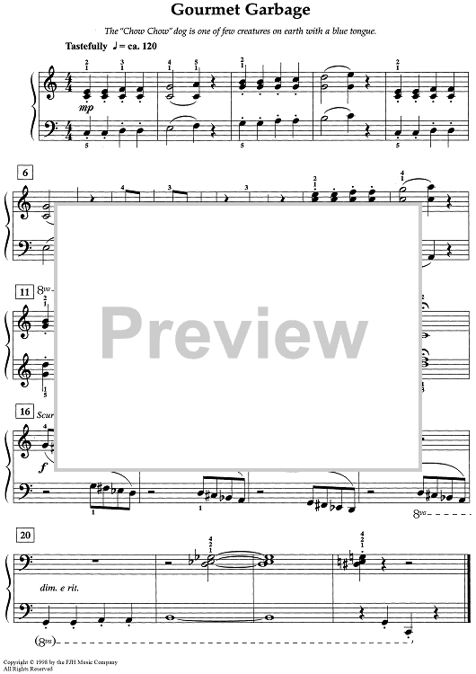"Gourmet Garbage" Sheet Music by Wynn-Anne Rossi