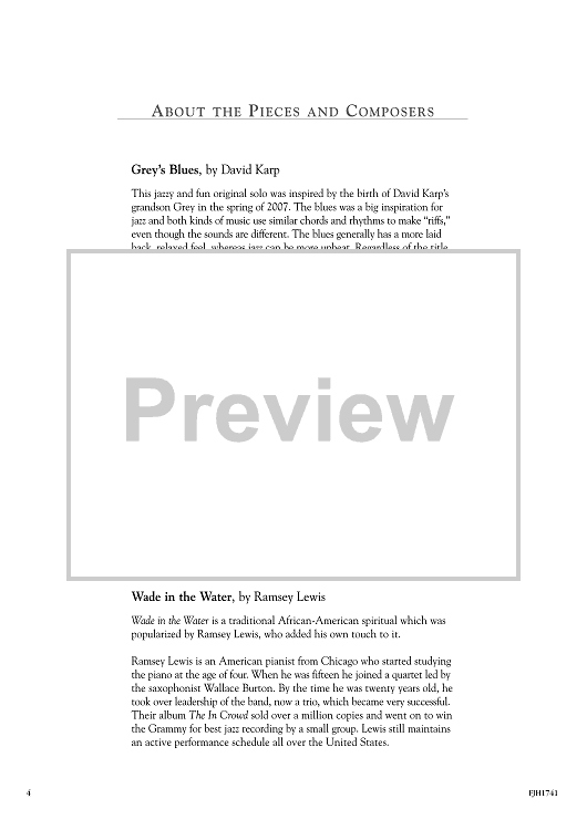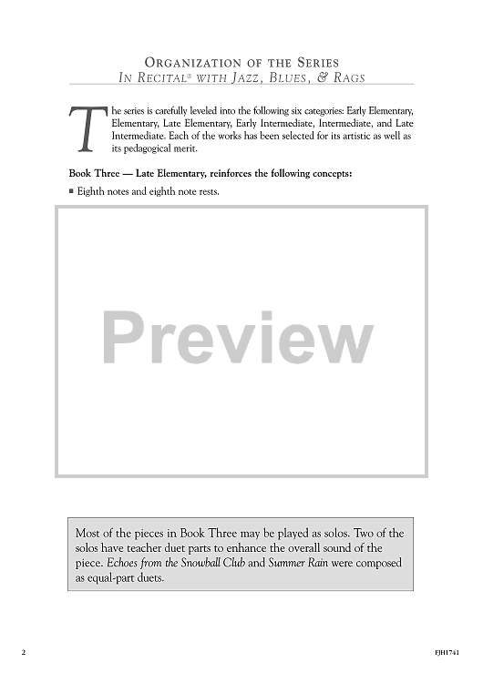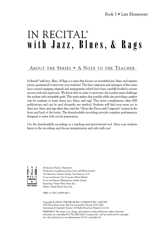 Book 3 is especially arranged for the late-elementary student, who will love practicing and performing pieces from this collection. Solos such as "The Entertainer," "Alarm Clock Blues," and "Ain't We Got Fun?" are just a few of the wonderful choices that will fulfill a student's jazzy mood! Includes a full-performance downloadable audio tracks along with engaging information in About the Pieces and Composers.