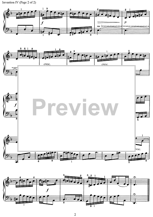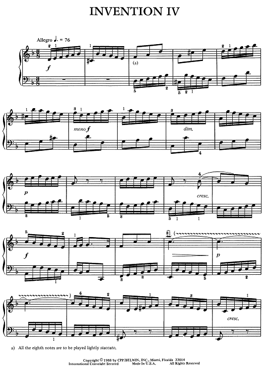"Invention IV" Sheet Music by Johann Sebastian Bach