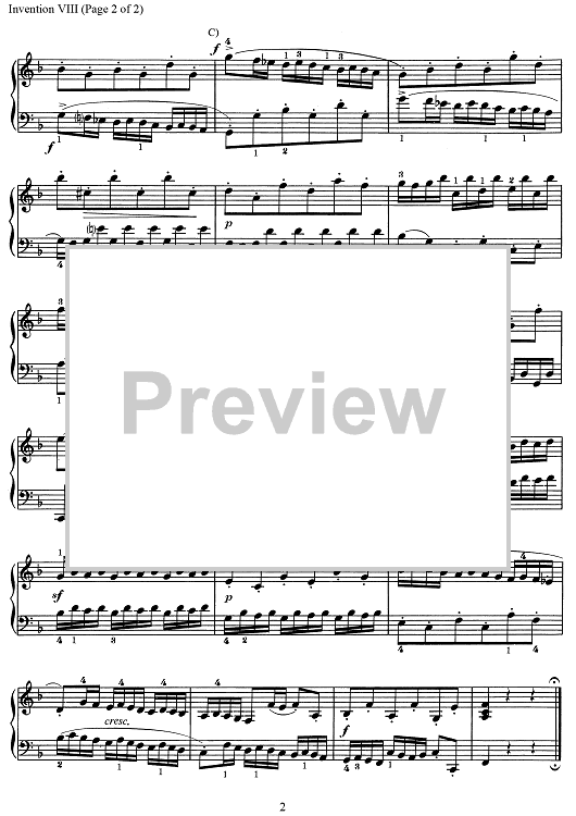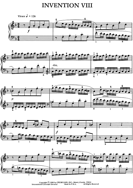 "Invention VIII" Sheet Music by Johann Sebastian Bach