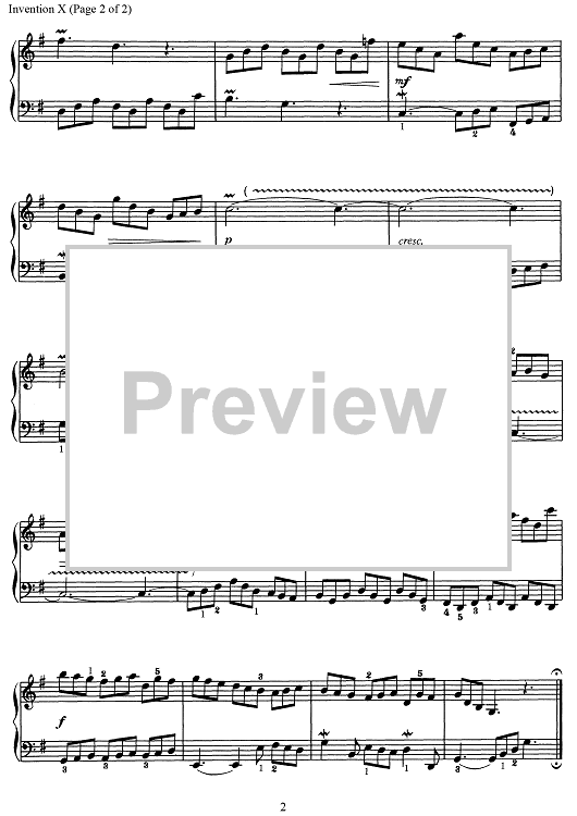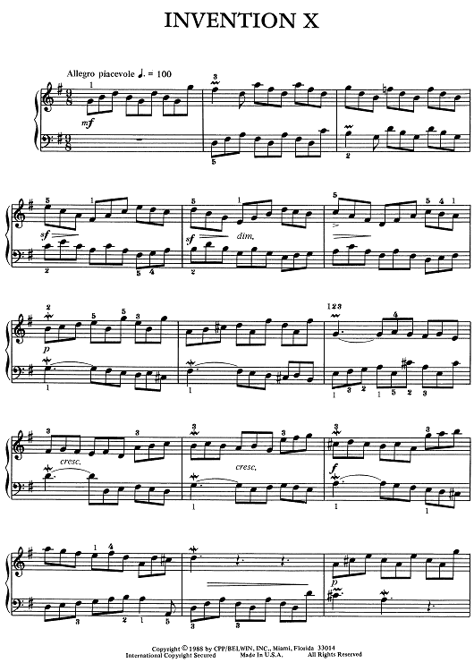"Invention X" Sheet Music by Johann Sebastian Bach
