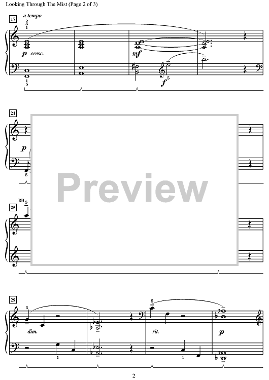 Digital Sheet Music for Looking Through the Mist by Robert D. Vandall scored for Piano; id:503117
