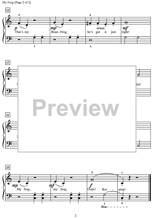 Digital Sheet Music for My Frog by Catherine Rollin scored for Piano; id:504919