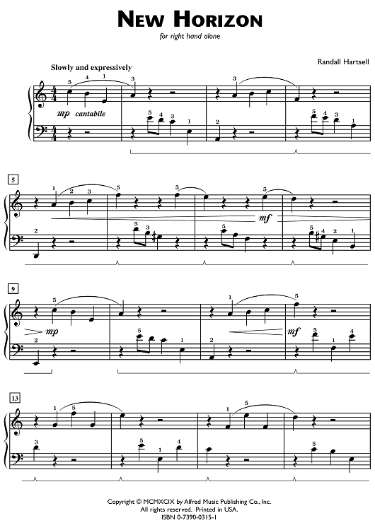 "New Horizon (for right hand alone)" Sheet Music by Randall Hartsell
