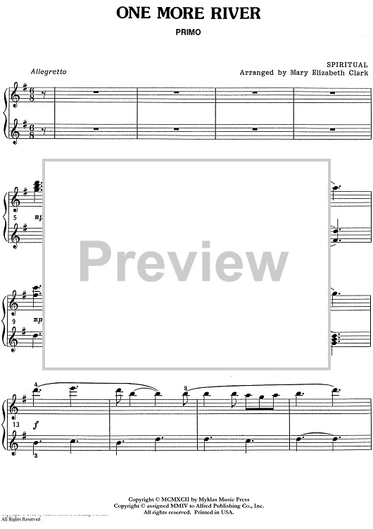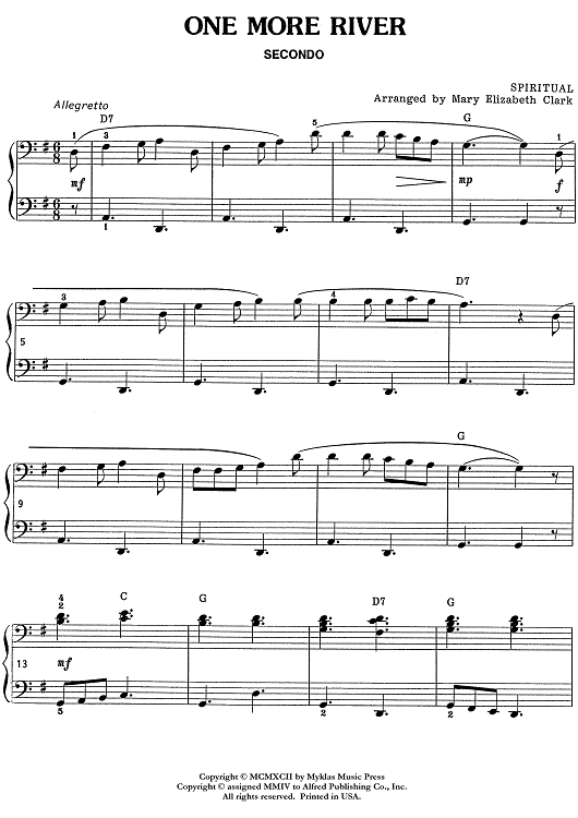 A lively and fun spiritual arranged for piano duet. Americana, sacred themes. G Major, 6/8 meter.