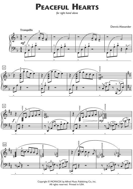 "Peaceful Hearts (for right hand alone)" Sheet Music by Dennis Alexander