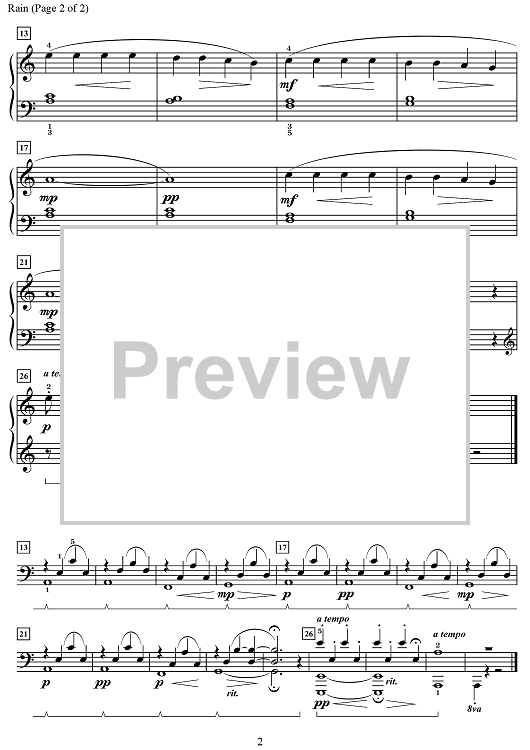 Digital Sheet Music for Rain by Catherine Rollin scored for Piano; id:504871