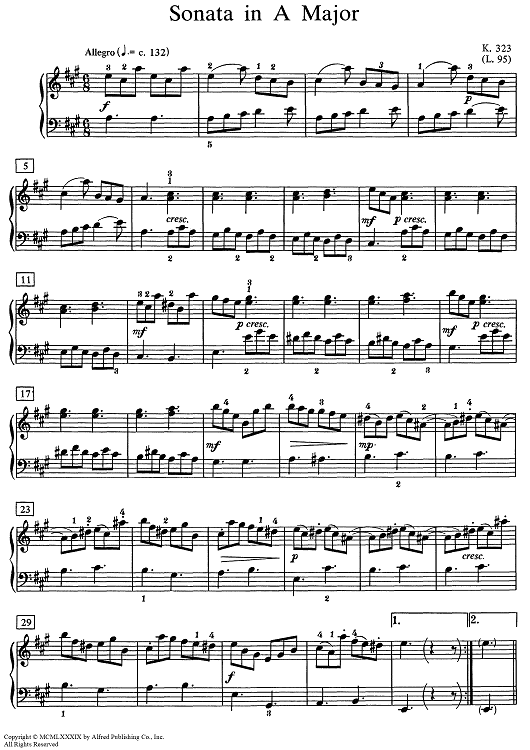 "Sonata in A Major [K. 323; L. 95]" Sheet Music by Domenico Scarlatti