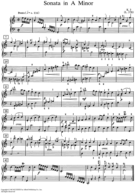 "Sonata in A Minor [K. 3; L. 378]" Sheet Music by Domenico Scarlatti