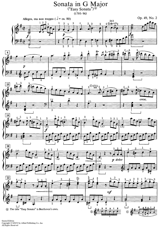 "Sonata in G Major ("Easy Sonata")" Sheet Music by Ludwig van Beethoven