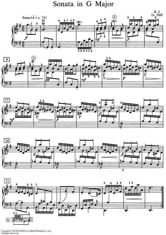 "Sonata in G Major [K. 2; L. 388]" Sheet Music by Domenico Scarlatti