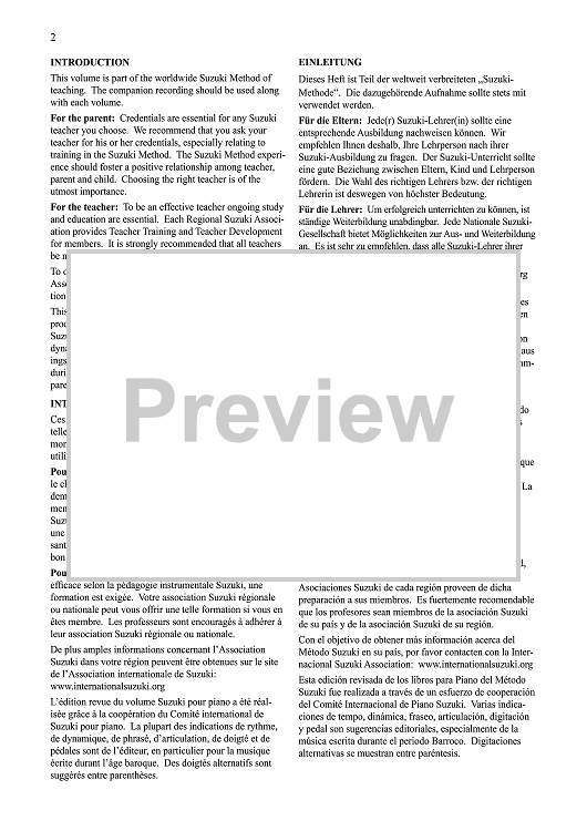 The New International Edition of Suzuki Piano School, Volume 5, includes French, German and Spanish translations as well as a newly recorded MP3 performed by internationally renowned recording artist Seizo Azuma.
