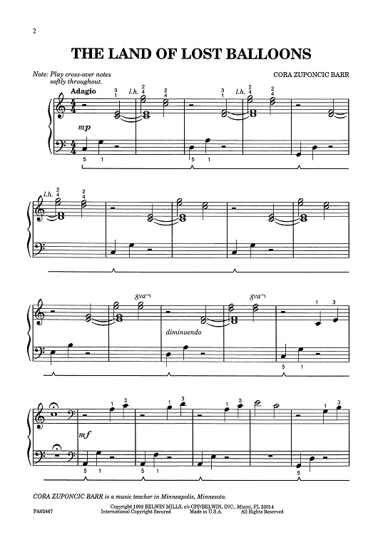 "The Land of Lost Balloons" Sheet Music by Cora Zuponcic Barr