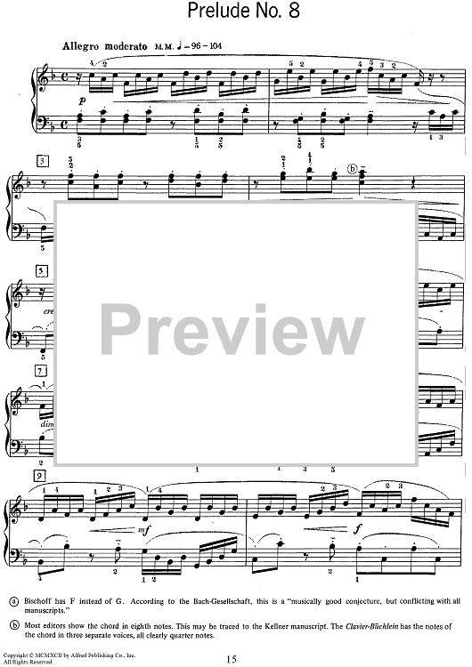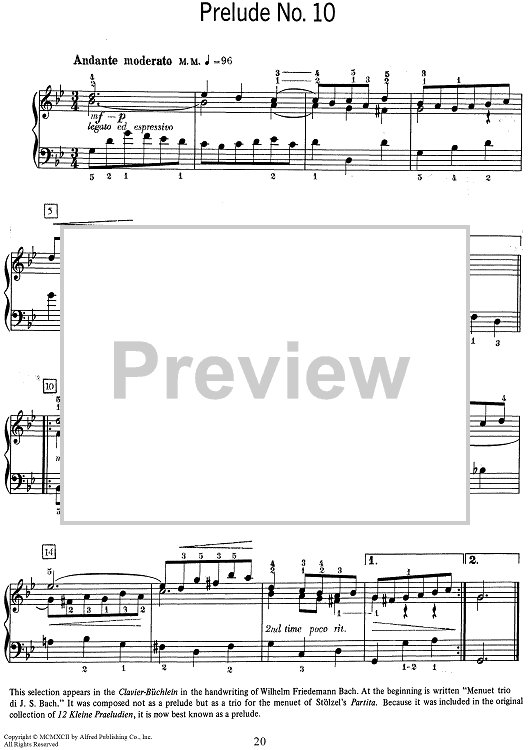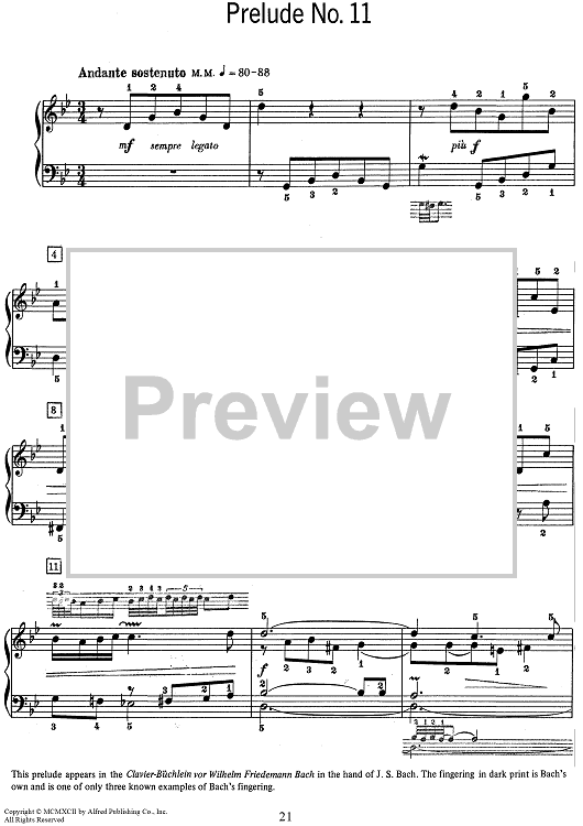Collected from several sources, these teaching pieces were published separately in the 18th and 19th centuries as the Twelve Short Preludes and the Six Short Preludes. Students are often introduced to these works prior to studying the Two-Part Inventions (Alfred Edition 22528). This unique edition includes the realization of ornaments and guidance concerning tempos and articulation.