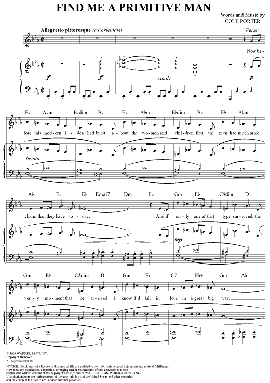 Digital Sheet Music for Find Me a Primitive Man by Cole Porter scored for Piano/Vocal/Chords; id:320968
