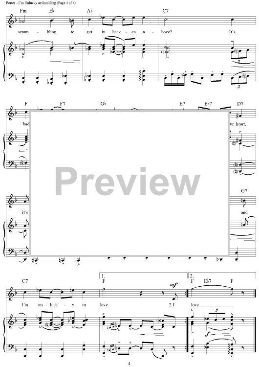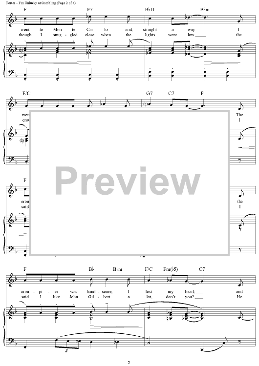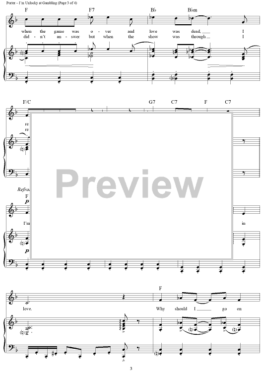 Digital Sheet Music for I'm Unlucky at Gambling (and I'm Unlucky in Love) by Cole Porter scored for Piano/Vocal/Chords; id:320992