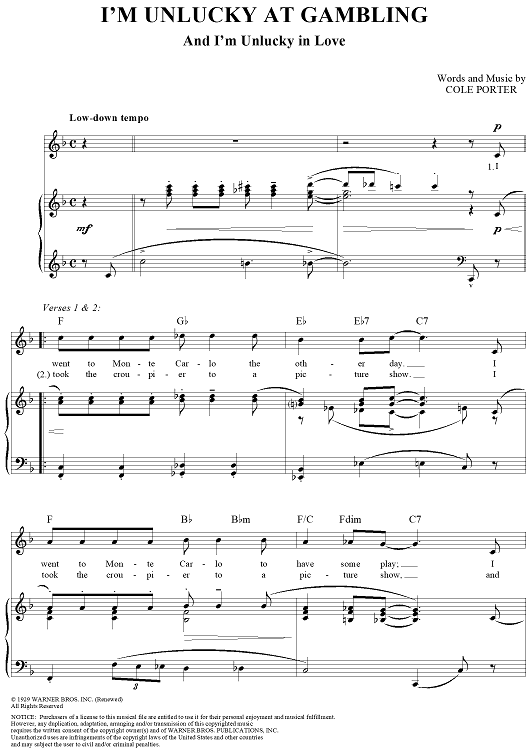 "I'm Unlucky at Gambling (and I'm Unlucky in Love)" Sheet Music by Cole Porter