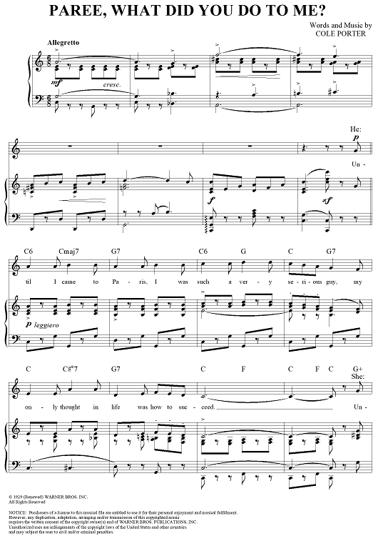 Digital Sheet Music for Paree, What Did You Do to Me? by Cole Porter scored for Piano/Vocal/Chords; id:320970