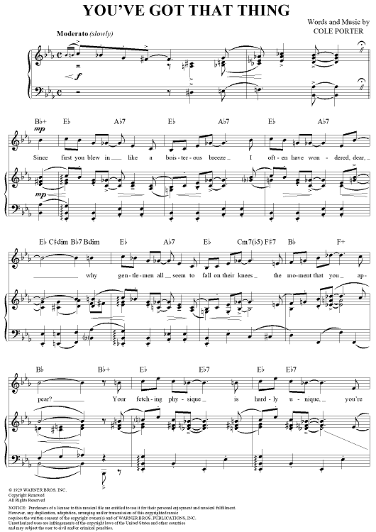 Digital Sheet Music for You've Got That Thing by Cole Porter scored for Piano/Vocal/Chords; id:320964
