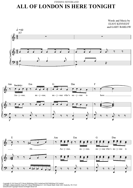 "All of London is Here Tonight" Sheet Music by Gary Barlow