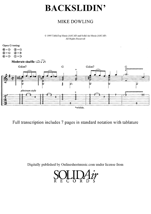 Digital Sheet Music for Backslidin' (No MP3) by Mike Dowling scored for Guitar Tab; id:451649