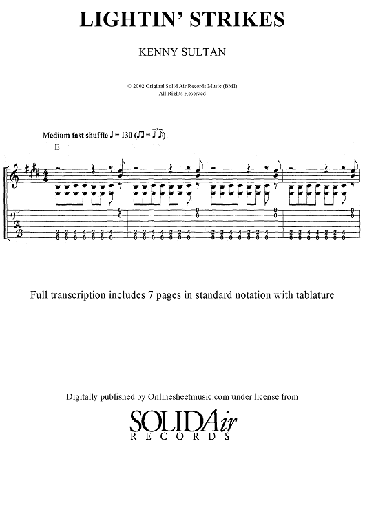 Digital Sheet Music for Lightnin' Strikes (With Embedded Audio) by Kenny Sultan scored for Guitar Tab; id:452134