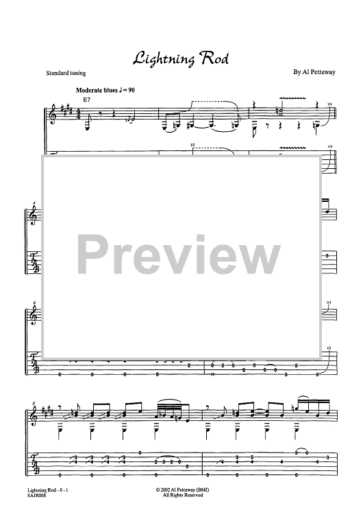 Digital Sheet Music for Lightning Rod (With Embedded Audio) by , Al Petteway scored for Guitar Tab; id:450579