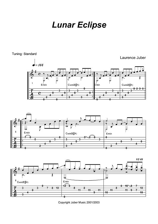 Digital Sheet Music for Lunar Eclipse by Laurence Juber scored for Guitar Tab; id:451895