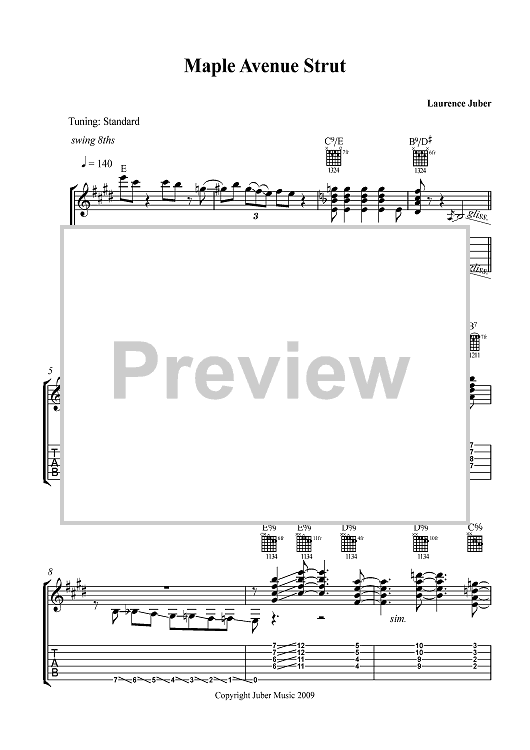 Digital Sheet Music for Maple Avenue Strut (No MP3) by Laurence Juber scored for Guitar Tab; id:451907